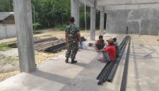 ISSUE.CO.ID,PAMEKASAN – Babinsa Koramil 0826-03/Proppo, Sertu Jufriadi, melaksanakan kegiatan komunikasi sosial (komsos) bersama para pekerja pembangunan Koperasi Merah Putih di Desa Banyubulu, Kecamatan Proppo, Kabupaten Pamekasan. Kegiatan tersebut dilakukan sebagai upaya mempererat hubungan antara TNI dan masyarakat sekaligus memberikan motivasi kepada para pekerja.