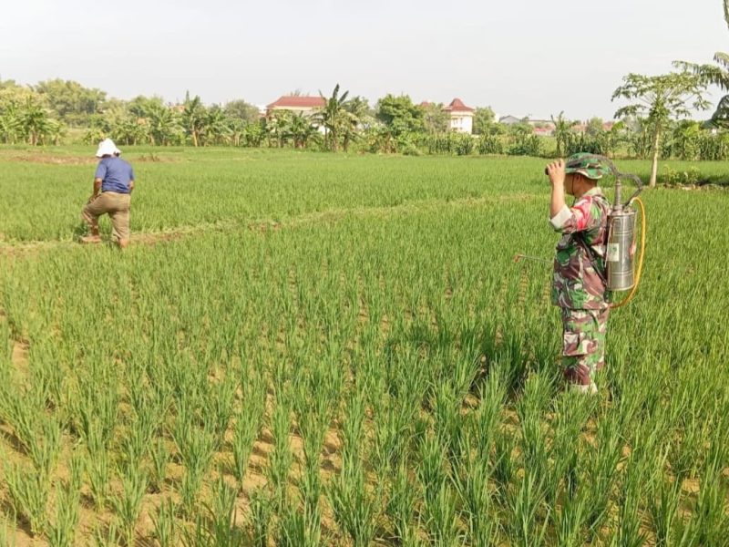 ISSUE.CO.ID,PAMEKASAN – Babinsa Koramil 0826-03/Proppo, Sertu Moh. Hasan, melaksanakan kegiatan pendampingan pertanian dengan membantu penyemprotan tanaman padi agar terhindar dari serangan hama dan penyakit. Kegiatan tersebut berlangsung di persawahan milik Moh. Salehuddin yang berada di Desa Toket, Kecamatan Proppo, Kabupaten Pamekasan.