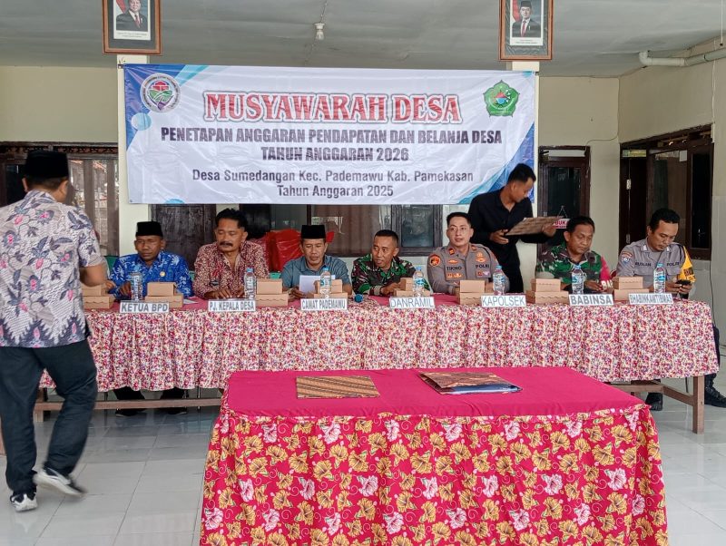 ISSUE.CO.ID,PAMEKASAN – Babinsa Koramil 0826-06/Pademawu, Sertu Rudi Wisyanto menghadiri Musyawarah Desa (Musdes) Penetapan Pendapatan dan Anggaran Belanja Desa (APBDes) Tahun Anggaran 2026 yang digelar di Balai Desa Sumedangan, Dusun Barat, Desa Sumedangan, Kecamatan Pademawu, Kabupaten Pamekasan. Kegiatan tersebut merupakan bagian penting dalam proses perencanaan dan penganggaran pembangunan desa.
