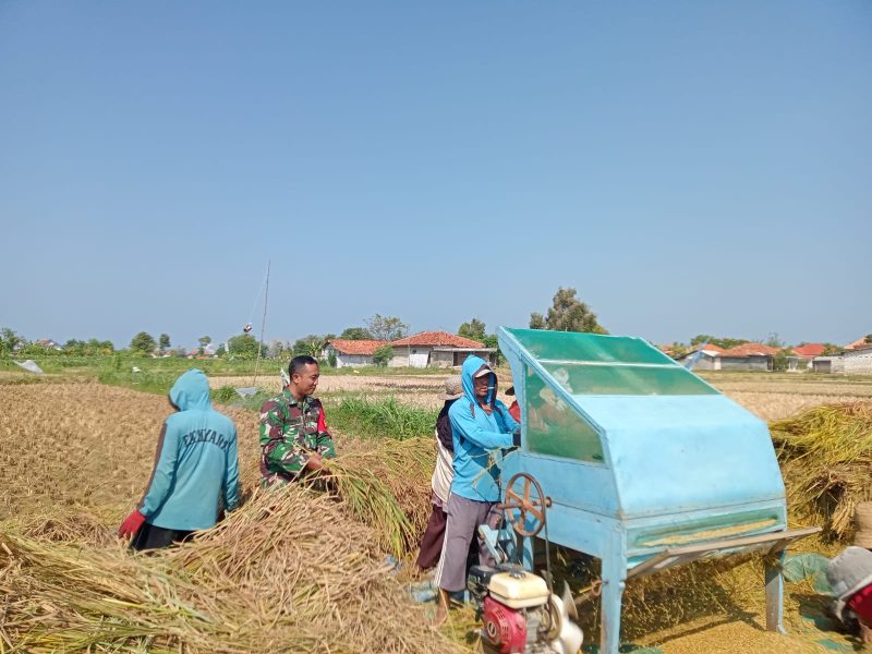 ISSUE.CO.ID,PAMEKASAN – Babinsa Koramil 0826-06/Pademawu, Serda Farid Perio Santoso melaksanakan kegiatan komunikasi sosial (komsos) sekaligus pendampingan ketahanan pangan dengan membantu panen padi di lahan milik Fathor, seorang petani yang juga anggota Kelompok Tani (Poktan) Taman Sari 2, di Dusun Modung, Desa Padelegan, Kecamatan Pademawu, Kabupaten Pamekasan.