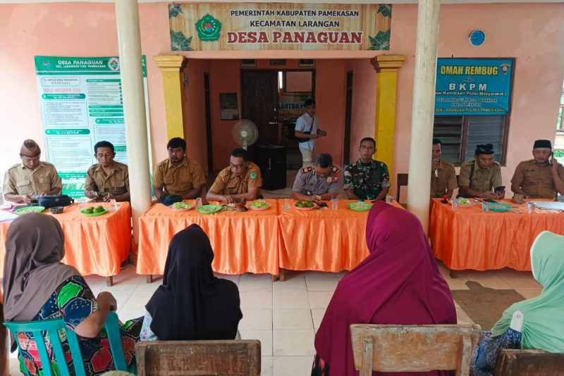Kegiatan tersebut dihadiri unsur Forkopimka dan perangkat desa, di antaranya Camat Larangan Moh. Hari, S.Sos., M.Si., Danramil Larangan Kapten Arh Bhakti Handoko yang diwakili Peltu Suswanto, Kapolsek Larangan AKP Suyanto, S.H., Bhabinkamtibmas Aipda Heru Wahyu Santoso, Babinsa Koptu Achmad Ruslan, Kepala Desa Panaguan Moh. Rais, perangkat desa, serta pendamping desa ABD Rafik.
