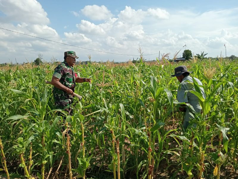 ISSUE.CO.ID,PAMEKASAN – Babinsa Koramil 0826-10/Waru, Serka Husen, melaksanakan kegiatan pendampingan dengan membantu warga membersihkan rumput dan gulma pada tanaman jagung milik Nurhasan. Kegiatan tersebut berlangsung di lahan seluas 0,2 hektare yang berlokasi di Dusun Tengah, Desa Tlonto Ares, Kecamatan Waru, Kabupaten Pamekasan.