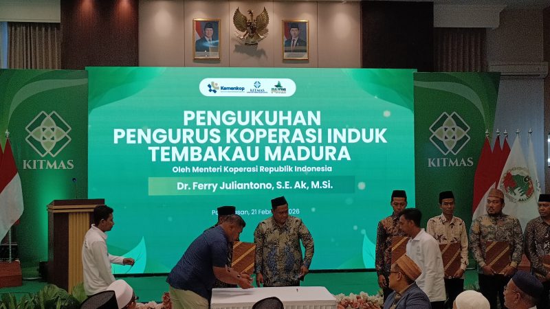 ISSUE.CO.ID,PAMEKASAN-Menteri Koperasi RI, Dr. Ferry Juliantono, S.E., Ak, M.Si mengukuhkan pengurus Koperasi Induk Tembakau Madura Sejahtera (KITMAS) di Aula Gudang PT. Bawang Mas Group, Sabtu (21/2/2026).