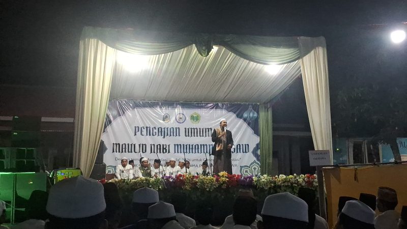 ISSUE, Bondowoso – Ribuan jamaah padati peringatan Maulid Nabi Muhammad SAW yang digelar HIMA PGMI IAI At-Taqwa bersama Pondok Pesantren Al-Falah, Minggu (28/9/2025). Acara ini menghadirkan nuansa religius penuh sholawat sekaligus meneguhkan komitmen generasi muda meneladani akhlak Rasulullah.