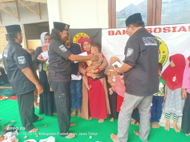 ISSUE.CO.ID,PAMEKASAN Barisan Nasional Pemuda Madura ( BNPM DPD Pamekasan ) tetap dalam aksi solidaritas dengan menyantuni puluhan anak yatim di wilayah Gugul Tlanakan pada minggu 18 Januari 2026
