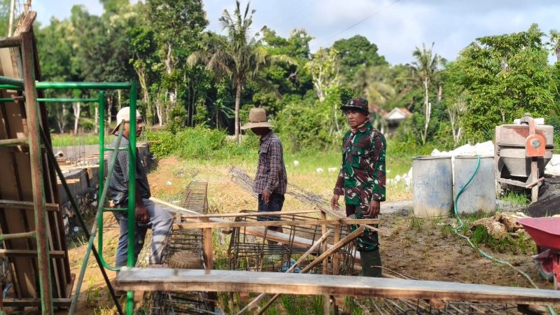 Dengan penuh semangat, Serda Taufik Hidayat turut bergotong royong menyusun rangka dan mengikat kawat sebagai penopang struktur sebelum proses pengecoran dilakukan. Kegiatan ini menjadi wujud nyata kedekatan TNI dengan masyarakat di wilayah binaannya.