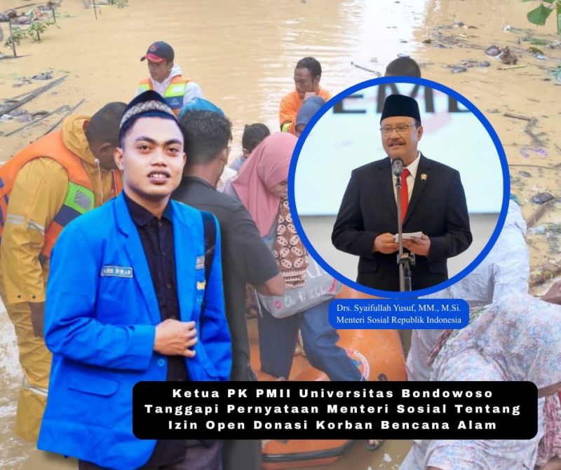 ISSUE, Essai. Pernyataan Menteri Sosial, Gus Ipul, mengenai kewajiban izin sebelum membuka donasi publik menimbulkan respons beragam di tengah masyarakat. Sebagai Ketua PK PMII Universitas Bondowoso, saya melihat bahwa persoalan ini tidak sekadar soal administratif, tetapi menyentuh ranah lebih dalam: solidaritas, kecepatan respons kemanusiaan, dan kepercayaan publik terhadap negara.
