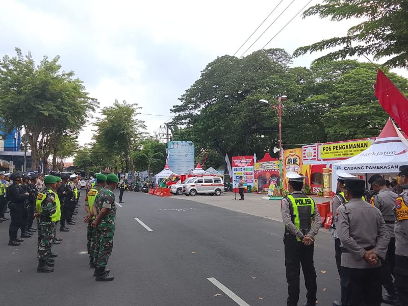 Apel gabungan tersebut melibatkan unsur TNI, Polri, Satpol PP, Dinas Perhubungan, serta instansi terkait lainnya. Para personel disiagakan di sejumlah titik strategis untuk memastikan situasi tetap aman dan kondusif. Kegiatan berlangsung tertib dengan pengecekan kesiapan personel dan perlengkapan pengamanan.