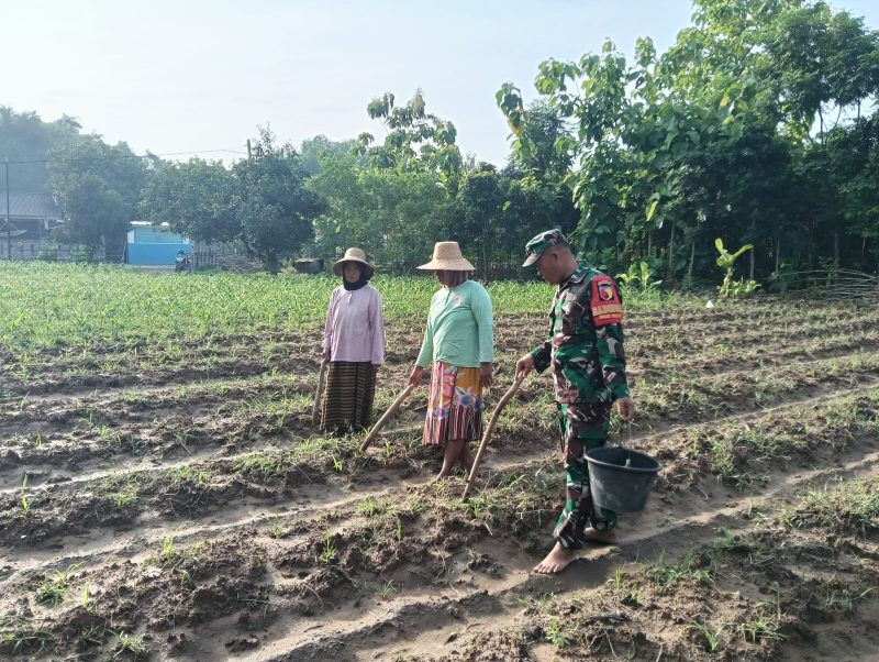 ISSUE.CO.ID,PAMEKASAN – Babinsa Koramil 0826-06/Pademawu Pagagan, Serda Edi Suswanto melaksanakan kegiatan komunikasi sosial (komsos) sekaligus pendampingan ketahanan pangan dengan membantu warga menanam bibit jagung di wilayah binaannya. Kegiatan tersebut dilakukan di lahan milik Nurul, seorang petani yang berada di Dusun Bong, Desa Pagagan, Kecamatan Pademawu, Kabupaten Pamekasan.
